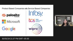 During the webinar, Ms. Gera provided valuable insights into the differences between product-based and service-based companies. She elaborated on the nuances of their interview processes and offered guidance on selecting appropriate coding languages and stacks tailored to each company's requirements.