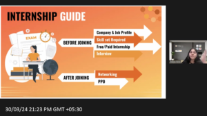 The webinar began with Ms. Pooja Gera sharing her journey, highlighting the challenges encountered before securing internships and providing candid insights into her experiences. Including missed opportunities such as the Google STEP internship, LinkedIn coaching mentorship program, and Uber STAR internship, her openness underscored the significance of resilience and learning from setbacks.