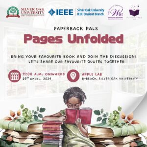 An engaging and inspiring book discussion session titled "Pages Unfolded" was organized by Paperback Pals under Silver Oak University IEEE Women In Engineering Student Branch Affinity Group, delving into the intriguing world of different genres of scripts, igniting enthusiasm and sparking curiosity among participants.