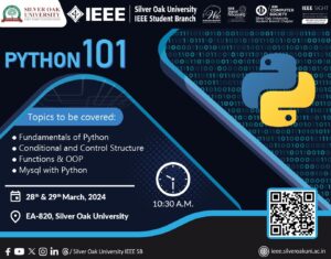 Silver Oak University IEEE Student Branch organised a two-day hands-on workshop titled "Python 101". The workshop’s objective was to provide foundational knowledge and practical insights into Python, thereby enhancing participant's proficiency in the language.